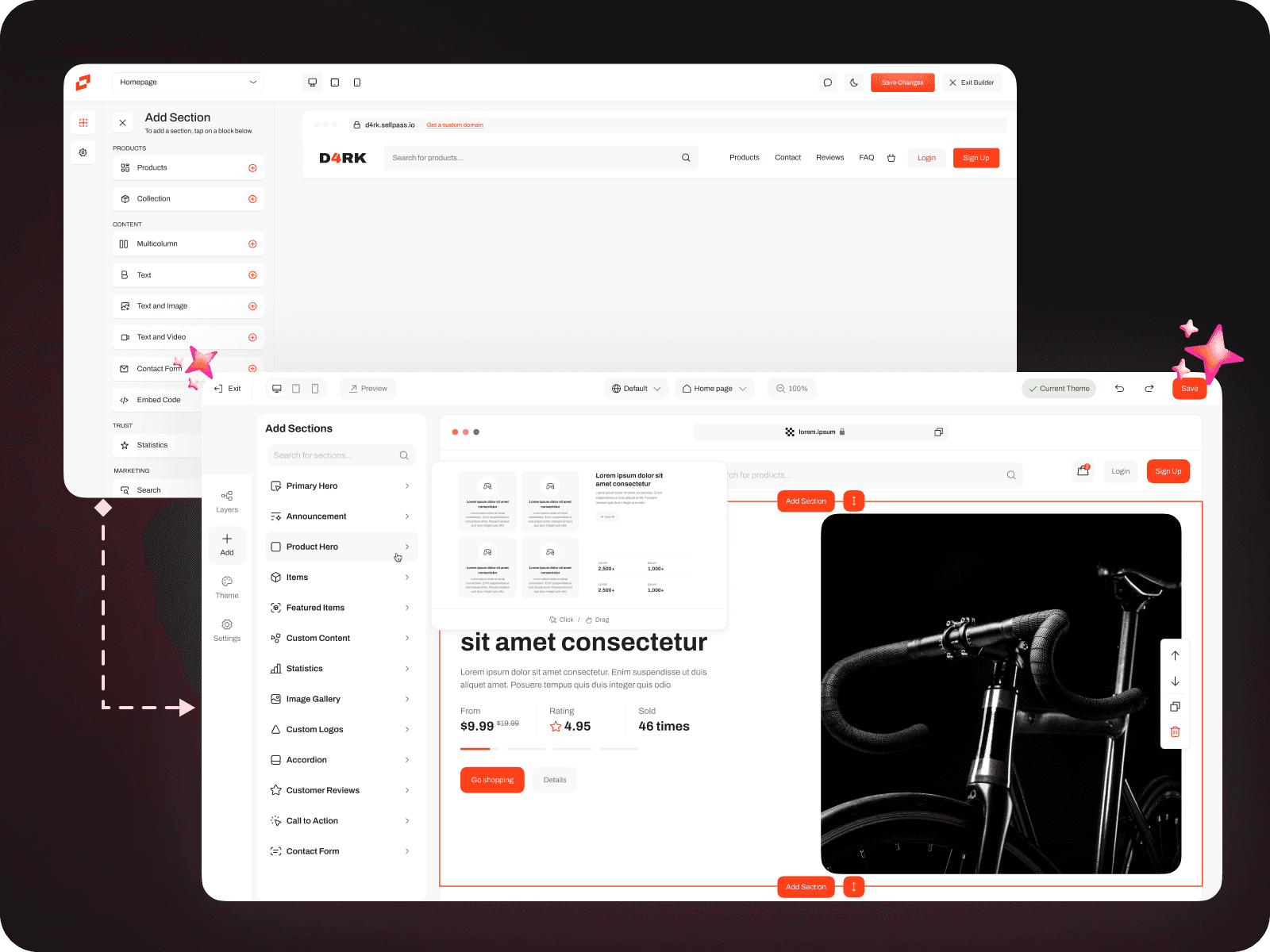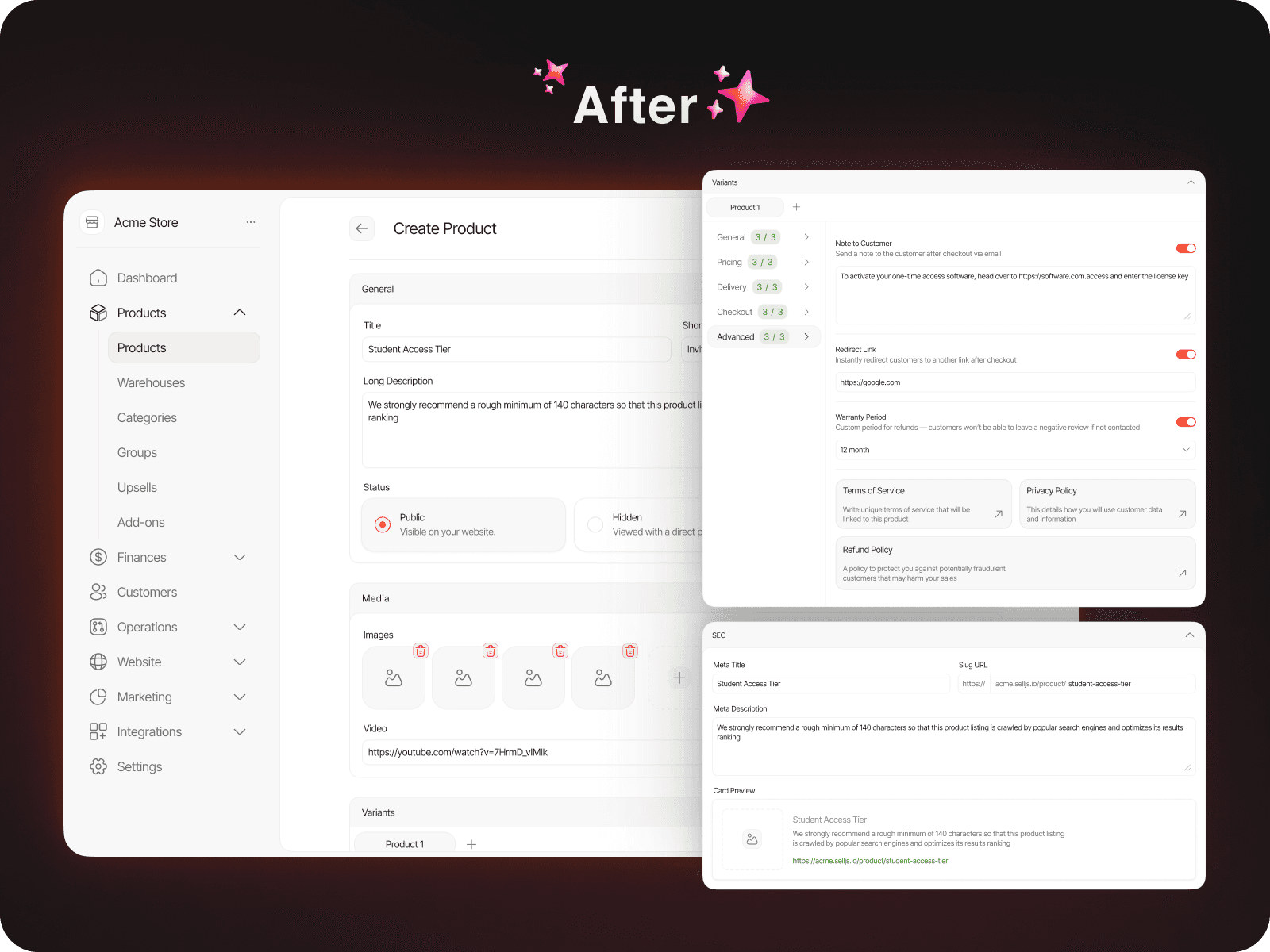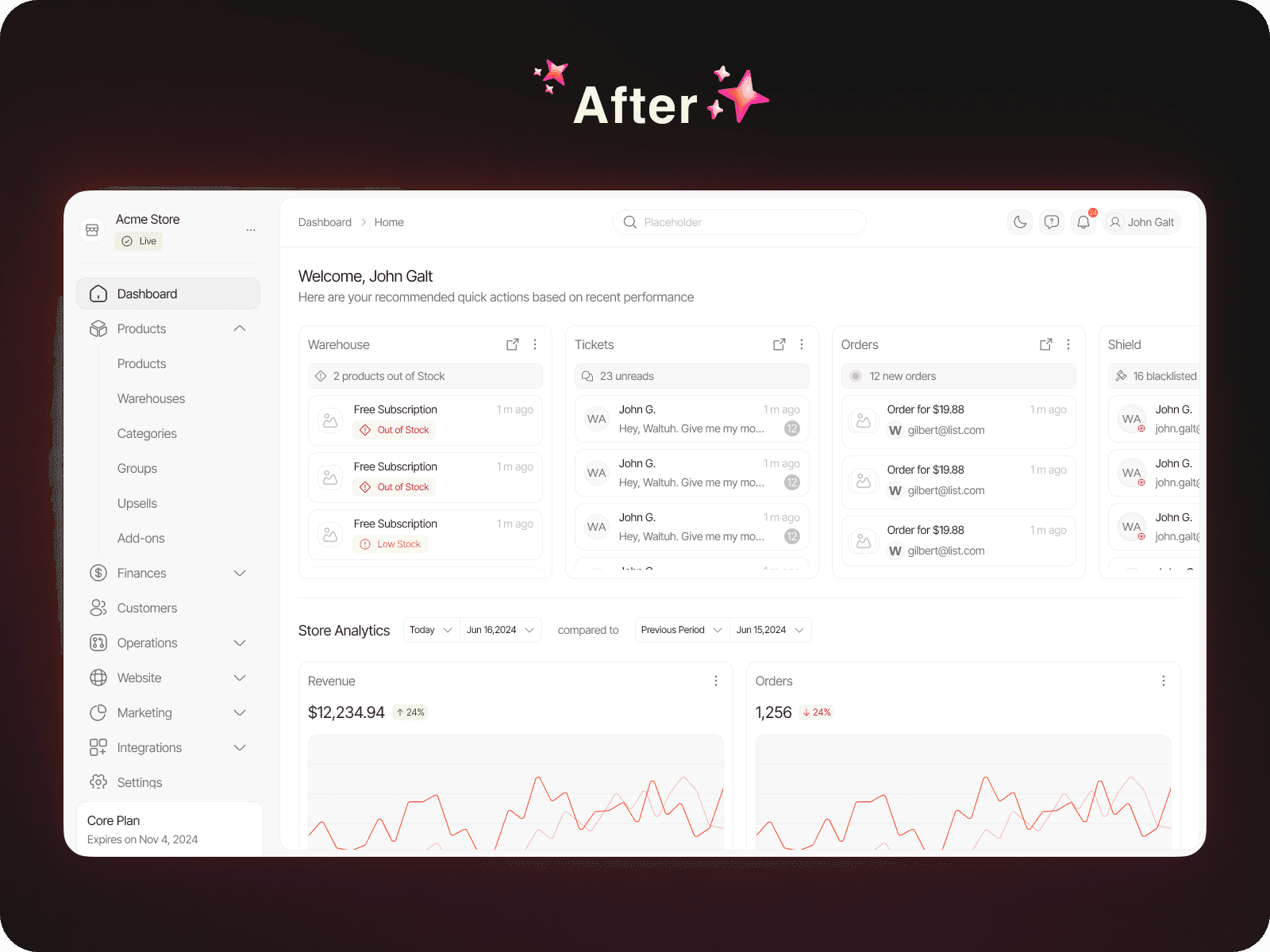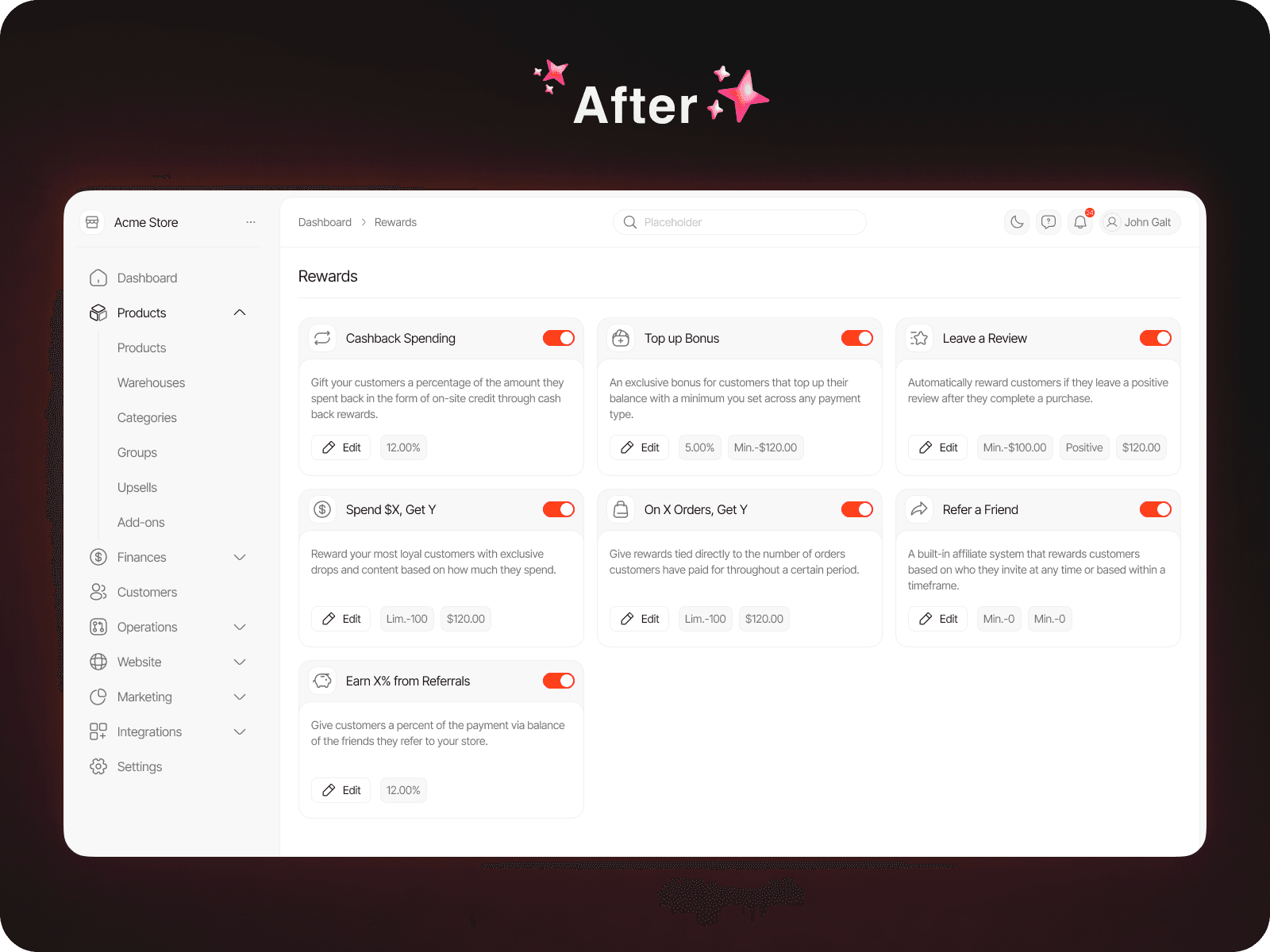 In 2021, the Sellpass product was launched, which allowed small and medium-sized businesses to quickly create online stores for digital goods with 0% commission. In 2023, the management decided to expand the functionality and rebrand: the product became known as Billgang, and a new version with improved features was released in beta in February 2024. My task was to create an updated design system, customize the project and implement improvements to enhance the quality of the product.