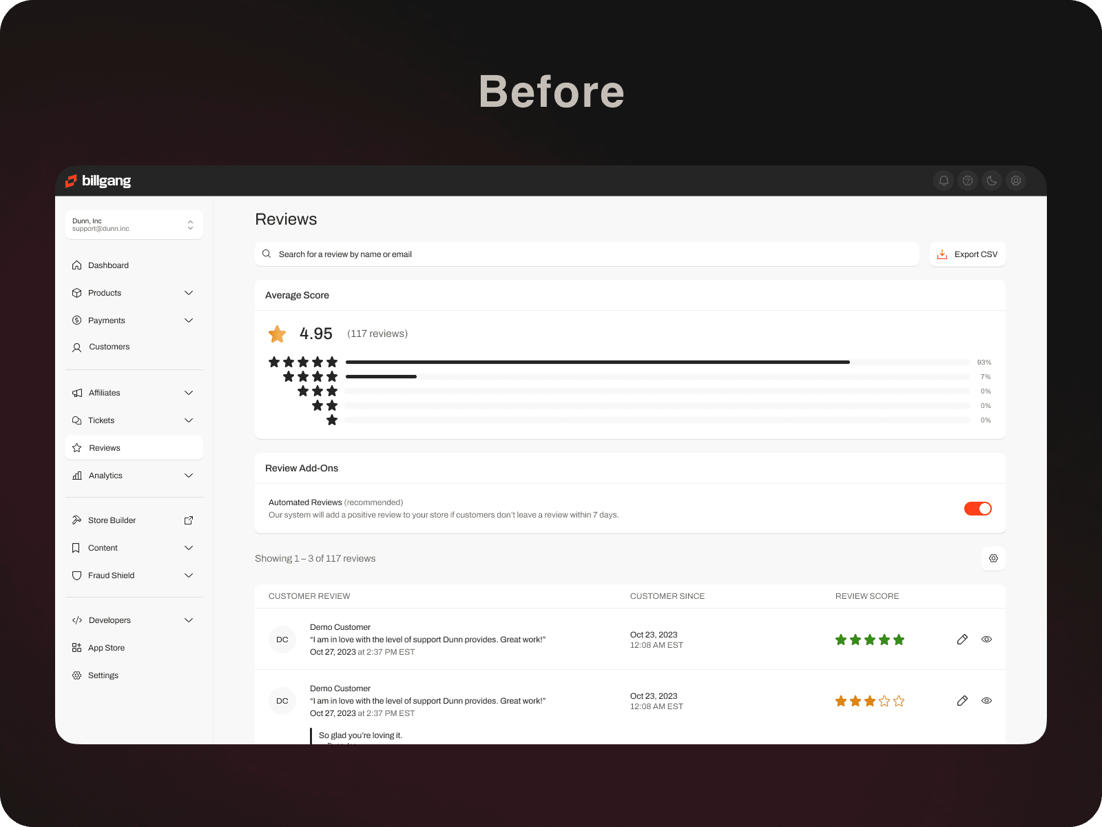Billgang is a marketplace platform that allows businesses to quickly launch their own online store and automate key processes. The main users are companies selling digital products: e-books, courses, games and exclusive offers. The product is successfully used worldwide, - 7500+ businesses, 2 million customers, over 500,000 products posted.