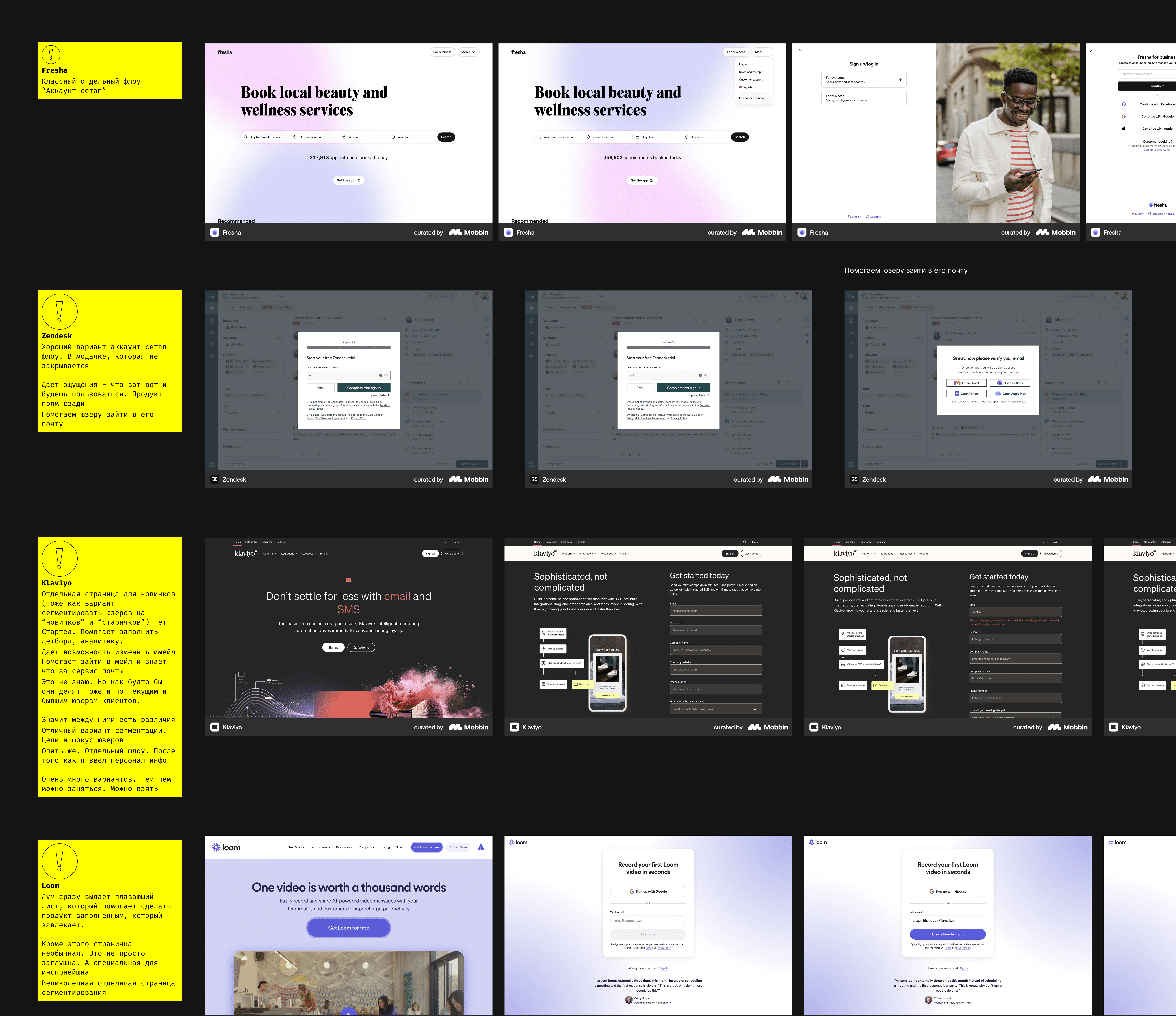 A clear pattern emerged: even when competitors had average products, their onboarding was carefully designed. It felt like a logical continuation of the landing page rather than a technical gate between marketing and product.