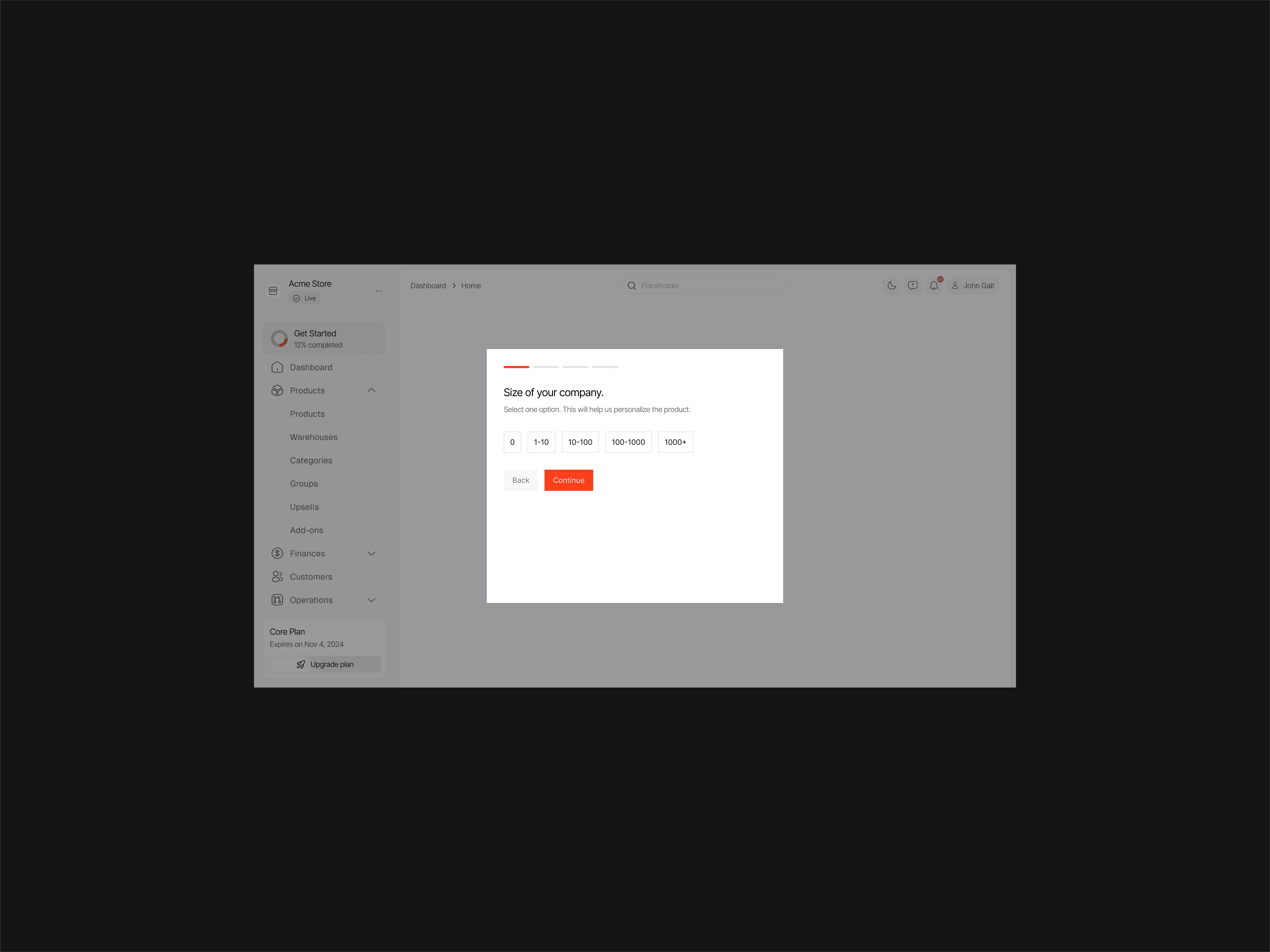 Non-blocking setup patterns that allowed users to explore the product while completing account configuration.