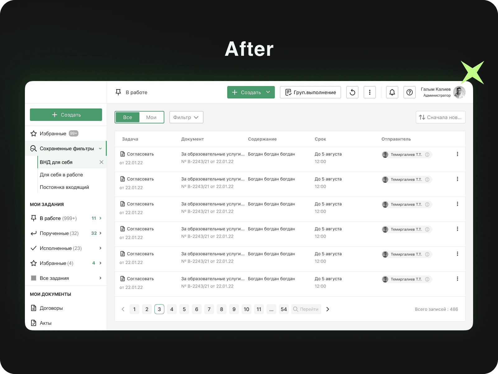 Accordingly, there were regular moments with front end inconsistency with the design by about 45%. I managed to solve the pressing problems and increase the speed of task processing work by 60%, the quality of solution delivery to users by 84% and customer happiness by 32%.