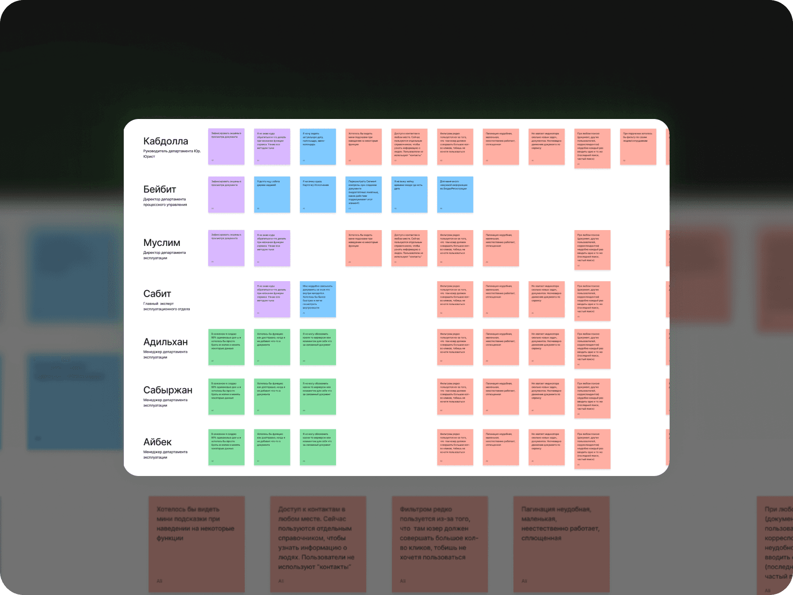 A picture was already forming. Now it was necessary to make Personas for a clear and deep view of our clients. I held repeated meetings, the number of participants was 24. That's how many I managed in one week.