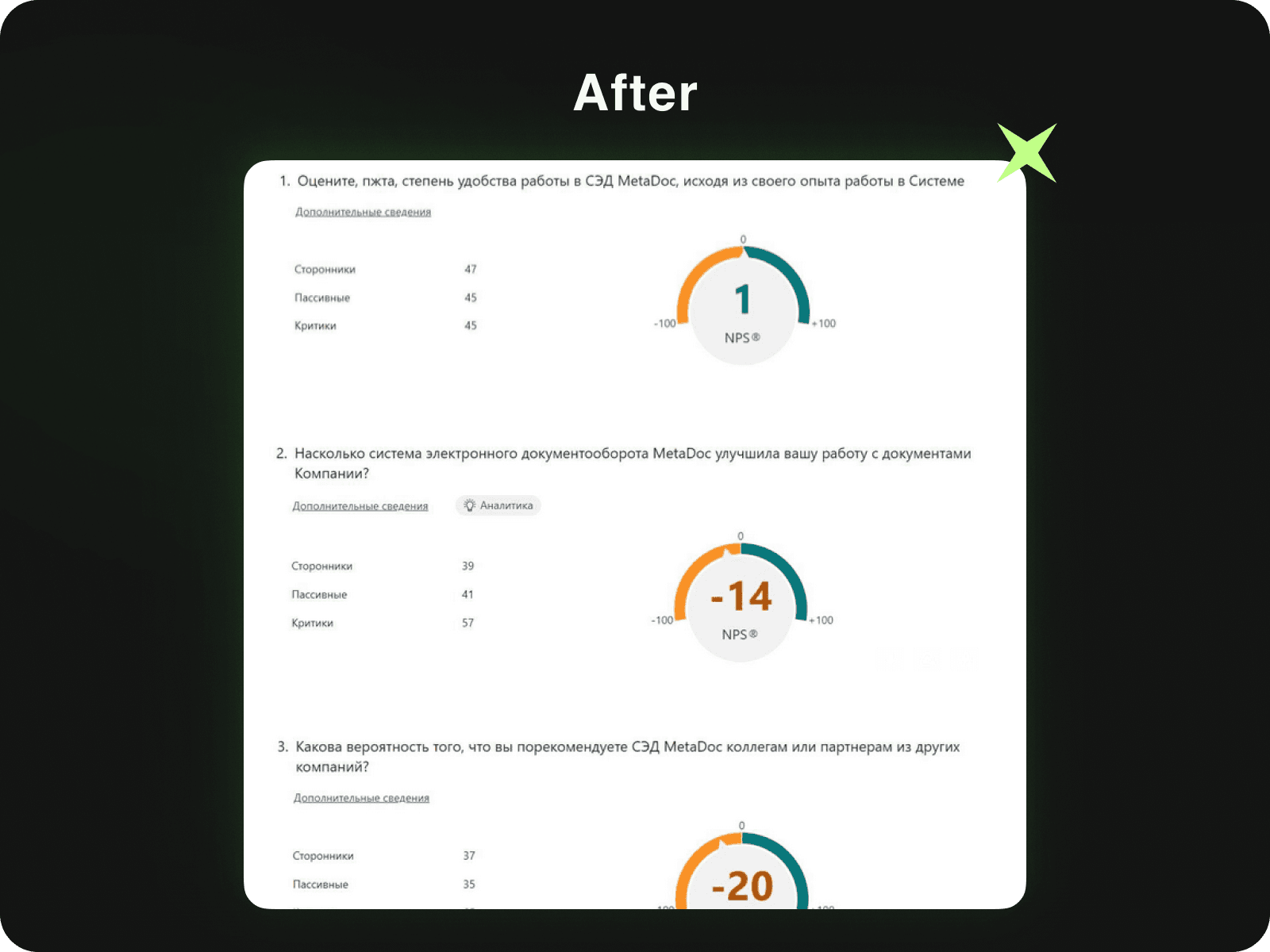 In addition, surveys on NPS were conducted in which 150 users participated (116 in Russian, 34 in Kazakh ). The initial result was on average -25.